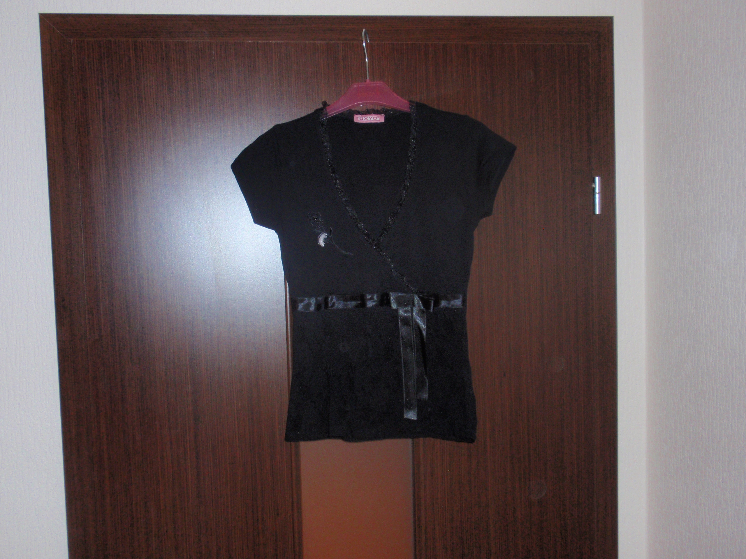 Melns elastīgs tops ar caurspīdīgu mežģīni priekšā apakšdaļā 36 izmērs, Ls 3,- (95% viskoze, 5% elastāns)