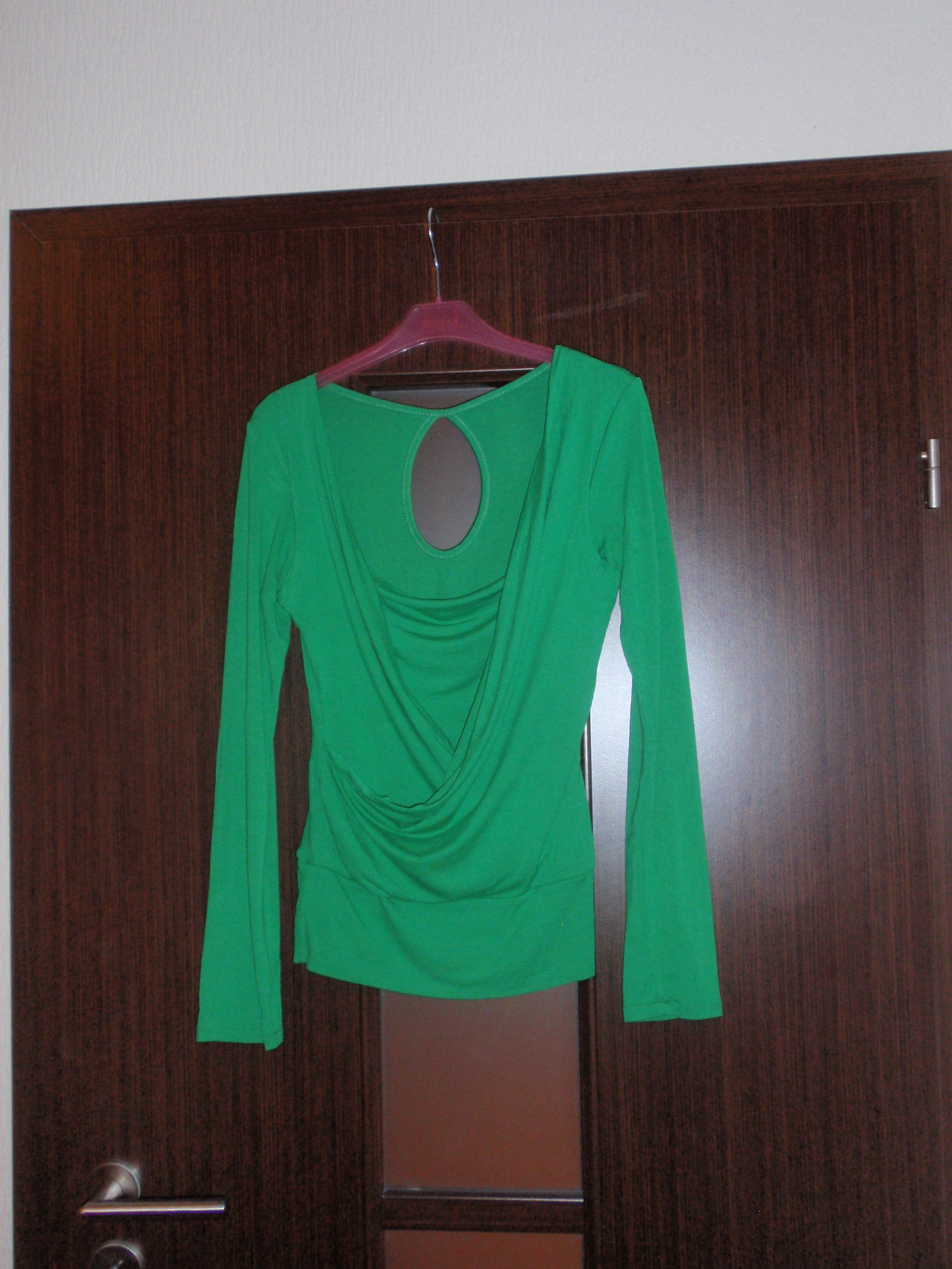 Koši zaļš elastīgs tops ar garām rokām, izmērs nav norādīts, bet, manuprāt, der no XS-M (95% viskoze 5% elastāns)