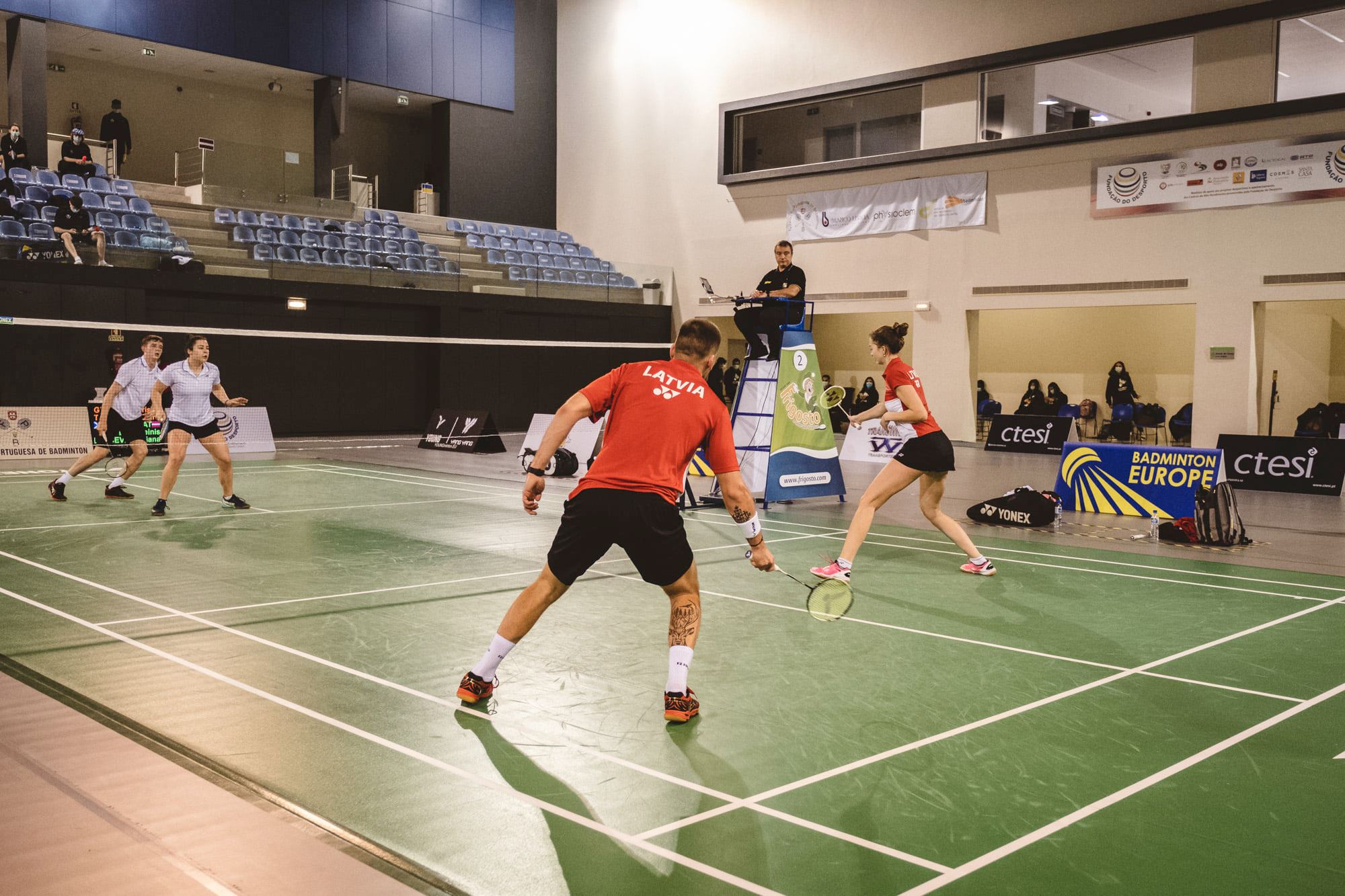 Latvijas badmintona izlase Eiropas jaukto komandu čempionāta kvalifikācijas turnīrā Portugālē zaudēja visās 4 komandu spēles, kā arī visās 20 individuālajās spēlēs. Tikai sieviešu vienspēlēs Jekaterina Romanova uzvarēja vismaz vienu setu spēlē pret ukrain